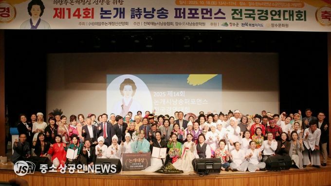 장수군은 18일 장수한누리전당 소공연장에서 열린 ‘제14회 논개 시낭송 퍼포먼스 전국경연대회’가 전국 각지에서 모인 참가자들의 열띤 경연 속에 성황리에 마무리됐다고 밝혔다.