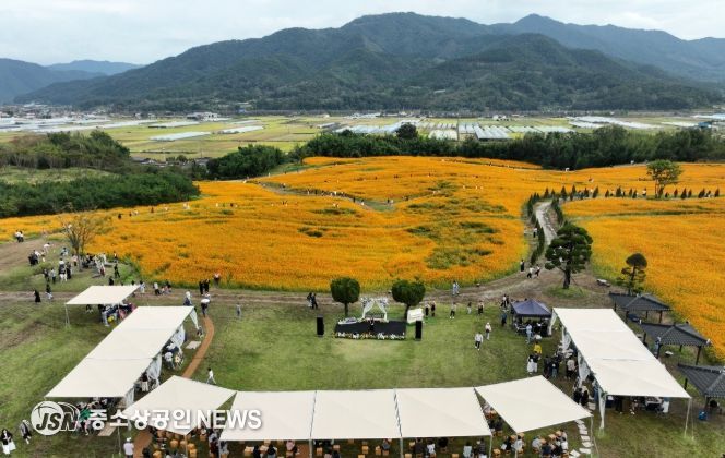 특히, 만개한 황화코스모스가 자연이 만든 무대가 되어 관람객들의 감탄을 자아냈다.