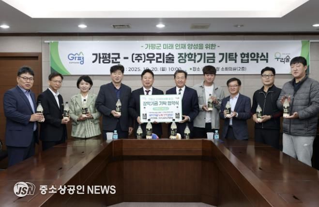 가평군은 ㈜우리술과 지역 인재양성을 위한 장학기금 기탁 재협약을 20일 체결했다고 밝혔다.
