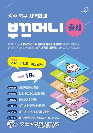 한편 부끄머니는 금액별(3·5·10·20·50만 원) 선불카드 형태로 발행되며, 가맹점 현황은 북구청 누리집에서 확인 가능하다.