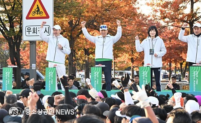 오세훈 서울시장은 2일 07시 30분 상암월드컵공원(마포구 상암동)에서 열린 ‘2025 JTBC 서울마라톤’ 출발식에 참석해 대회 개최를 축하하고 출전 선수들의 안전한 완주를 응원했다.