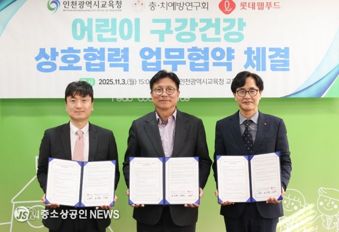 인천광역시교육청)은 3일 충·치예방연구회, 롯데웰푸드㈜와 함께 관내 어린이의 구강건강 증진을 위한 업무협약을 체결했다.