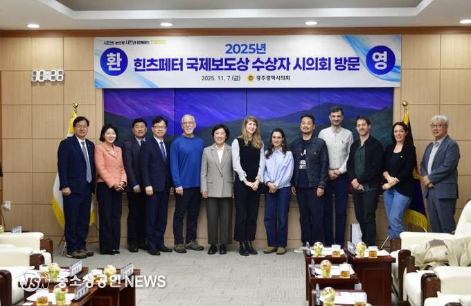 광주광역시의회는 7일, 시의회 열린시민홀에서 2025년도 ‘힌츠페터 국제보도상’ 수상자들과 공동조직위원장 등 20여명을 초청하여 축하 하고 격려하는 시간을 가졌다.
