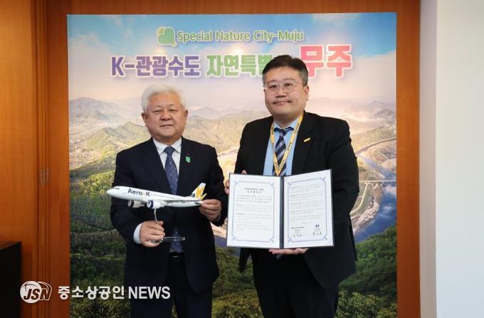 무주군은 지난 10일 에어로케이항공(주)과 ‘지역관광 활성화 및 상생 협력체계 구축을 위한 업무협약’을 체결했다.