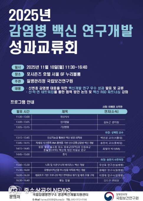 질병관리청 국립보건연구원은 11월 10일 서울 포시즌스 호텔(서울 종로구)에서 '2025년 감염병 백신 연구개발 성과교류회'를 개최한다.