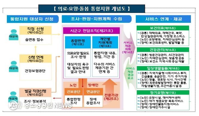 통합돌봄은 일상생활에 어려움을 겪는 사람이 살던 곳에서 건강한 생활을 영위하도록 돌봄지원을 통합하여 제공하기 위한 제도로, 일상생활 유지에 어려움이 있어 복합적인 지원이 필요한 노인, 장애인 등을 대상으로 한다.