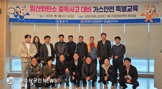 광양시는 지난 11월 12일 중마동 커뮤니티센터 소회의실에서 한국가스안전공사 전남동부지사와 함께 23개 가스시공업체 담당자를 대상으로 일산화탄소 중독사고 예방을 위한 가스 안전 특별교육을 실시했다고 밝혔다.