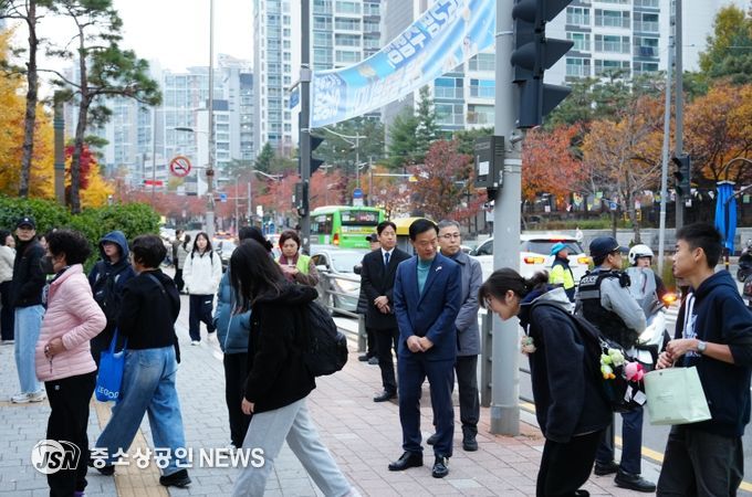 이른 아침부터 계성고등학교 시험장을 찾은 이승로 성북구청장은 관계 공무원들과 함께 학교 주변 교통 상황을 점검하며 시험장으로 들어서는 수험생들에게 응원의 메시지를 전했다.