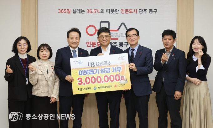 광주 동구는 17일 구청 접견실에서 OB맥주 광주지점(지점장 김태호)의 이웃돕기 성금 3백만 원 기부금 전달식을 진행했다고 밝혔다.