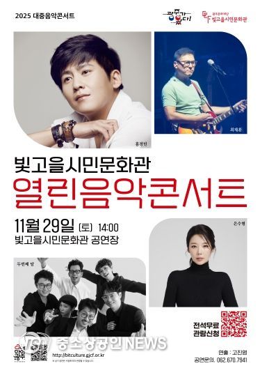 광주문화재단은 오는 11월 29일 빛고을시민문화관 공연장에서 ‘2025 대중음악콘서트(2회차)’를 전석 무료로 개최한다고 밝혔다. 이번 공연은 시민 문화복지 실현과 문화 접근성 확대를 위한 열린 음악회로, 지역민 누구나 부담 없이 참여할 수 있는 공공기획 공연이다.