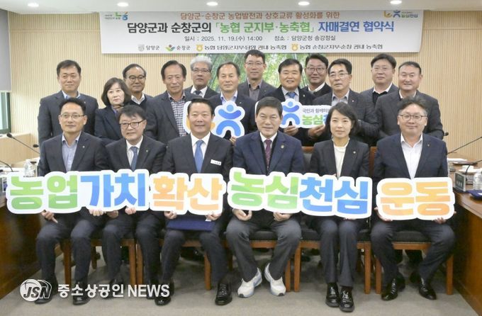 순창군과 담양군의 양 지역 농·축협장이 한자리에 모여 상호 농업발전과 상생협력을 다짐하는 자매결연 협약을 맺어 눈길을 끌었다.