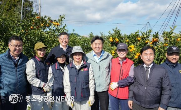 오영훈 제주특별자치도지사가 20일 오후 서귀포시 남원읍 위미리 온주밀감 수확 농장을 찾아 일손 돕기에 나섰다.