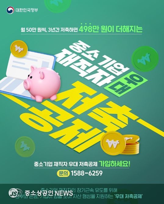 월 50만 원씩, 3년간 저축하면 498만 원이 더해지는 중소기업 재직자 우대 저축공제* 가입하세요!