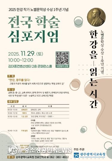 광주시교육청은 오는 29일 오전 10시 서구 김대중컨벤션센터 콘퍼런스홀에서 한강 작가의 노벨문학상 수상 1주년을 기념하는 ‘전국 학술 심포지엄’을 개최한다.