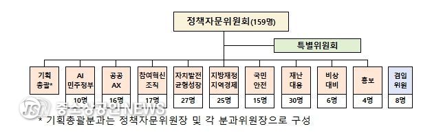 향후 1년(’25.11.24.~’26.11.23.)간 활동하게 되는 제8기 정책자문위원회는 학계·연구원·기업·시민사회 등 다양한 분야의 전문가 159명이 위촉됐으며, 행정안전부 조직개편(’25.11.25. 시행 예정) 내용과 연계해 10개 분과로 구성됐다.