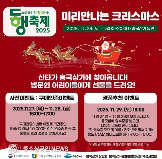 여수시는 오는 11월 29일 흥국상가 일원에서 연말 맞이 특별행사 ‘미리 만나는 크리스마스’를 개최한다고 밝혔다.
