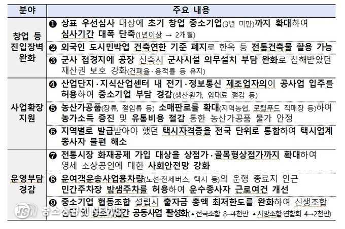 이번 방안은 경기 회복의 흐름이 민생현장의 지속가능한 성장과 도약으로 이어지도록, 중소기업과 소상공인이 사업운영 전반에서 체감하는 불합리한 규제애로를 선제적으로 개선하기 위해 마련됐다.