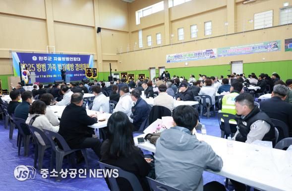 완주군 자율방범연합대가 최근 봉동읍에 위치한 완주 반다비체육센터에서 ‘2025 방범 가족 범죄예방 결의대회’를 성황리에 개최했다.