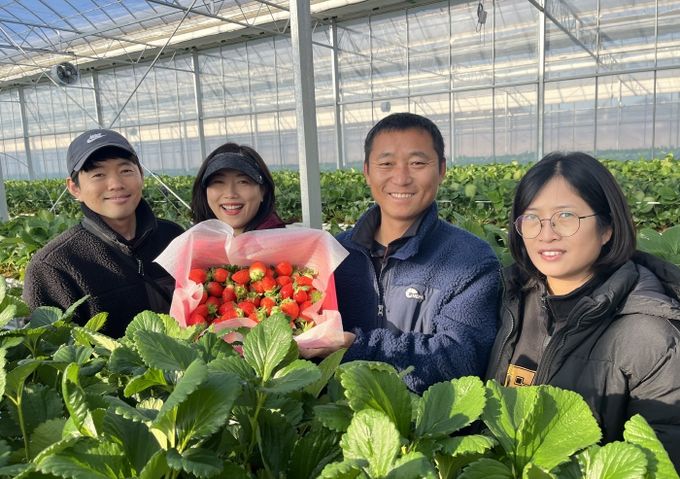 강진군이 2025년에 개소해 첫 입주자를 받은 임대형 스마트팜에서 올해 첫 딸기를 수확한 청년 농업인들과 소통의 시간을 가졌다.