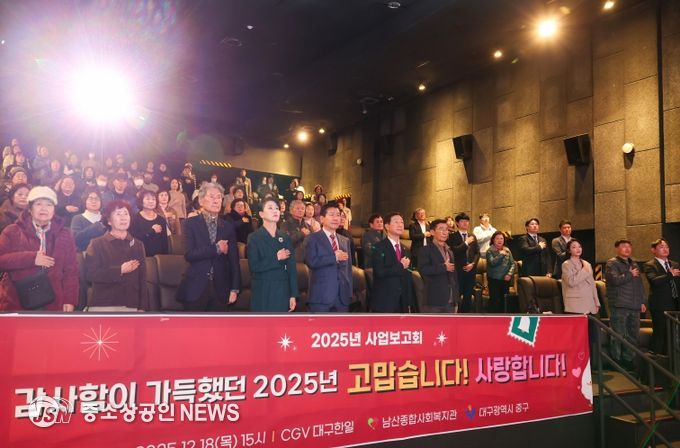 대구 중구는 남산종합사회복지관(관장 윤보경) 주관으로 지난 지난 18일 CGV대구한일에서 후원자와 자원봉사자, 지역주민 등 100여 명이 참석한 가운데 2025년 한 해 동안의 사업과 성과를 공유하는 사업보고회를 개최했다.