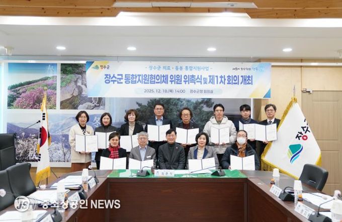 장수군은 지난 18일 장수군청 회의실에서 제1기 장수군 통합지원협의체 위원 위촉식 및 제1차 회의를 개최하고 지역 중심의 통합돌봄 체계 구축을 위한 본격적인 출발을 알렸다고 밝혔다.