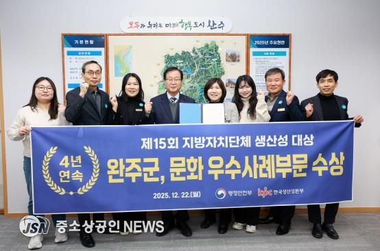 완주군이 ‘무장애 문화’를 행정 전반에 접목한 정책 성과를 인정받아, 행정안전부가 주최하고 한국생산성본부가 주관한 ‘제15회 지방자치단체 생산성대상’ 문화분야에서 기관표창을 수상했다.