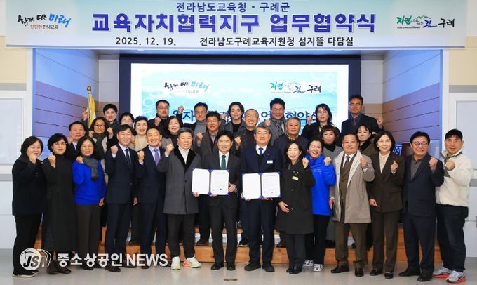 구례군은 지난 19일, 구례교육지원청 섬지뜰 다담실에서 전라남도교육청, 구례교육지원청, 구례군의회, 학교장, 민관산학위원, 학부모연합회 등 50여명이 참석한 가운데‘구례교육자치협력지구’업무협약을 체결했다고 밝혔다.