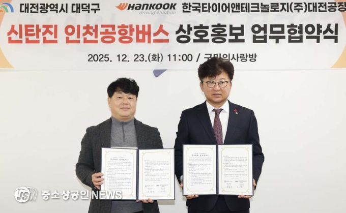 협약에 따라 대덕구와 한국타이어 대전공장은 △근로자 대상 인천공항버스 이용 홍보 및 안내 △사내 홍보 매체를 활용한 운행 시간표·노선·운임 정보 제공 △근로자 이용 의견 수렴 및 개선 사항 공유 △공항버스 이용 활성화를 위한 지속적인 협력 등을 추진한다.