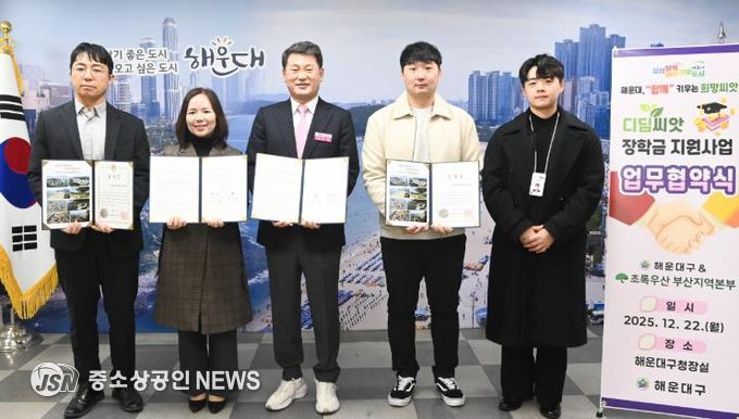 해운대구는 12월 22일, 구청장실에서 초록우산 부산지역본부(부울경권역총괄본부장)와 ‘디딤씨앗 장학금 지원사업’추진을 위한 업무협약을 체결했다.