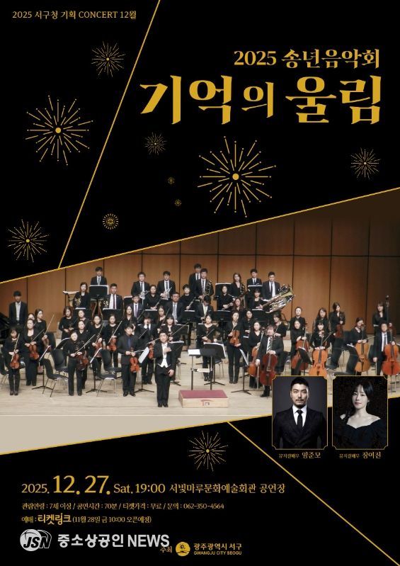 광주광역시 서구는 2025년 한 해를 마무리하며 오는 27일 오후7시 서빛마루문화예술회관에서 송년음악회 ‘기억의 울림’을 개최한다.