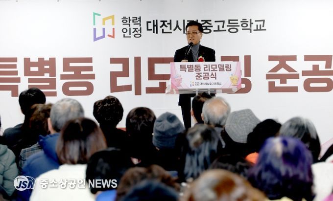 대전시의회 조원휘 의장은 24일 대전시립중고등학교 특별동 리모델링 공사 준공식에 참석해 준공을 축하하며, 배움을 향한 만학도들의 꿈과 용기를 응원했다.