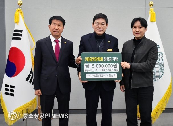 (재)담양장학회는 지난 26일 ㈜이산스틸(대표이사 김승우)에서 5백만 원을, ㈜고서삼화자원(대표 이형수)에서 2백만 원을 기탁했다고 밝혔다.