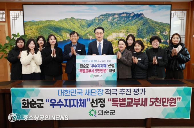 화순군은 지난 24일 행정안전부가 주관한 ‘대한민국 새단장’ 캠페인 추진실적 평가에서 우수 지자체로 선정돼 특별교부세 5천만 원을 확보했다고 밝혔다.