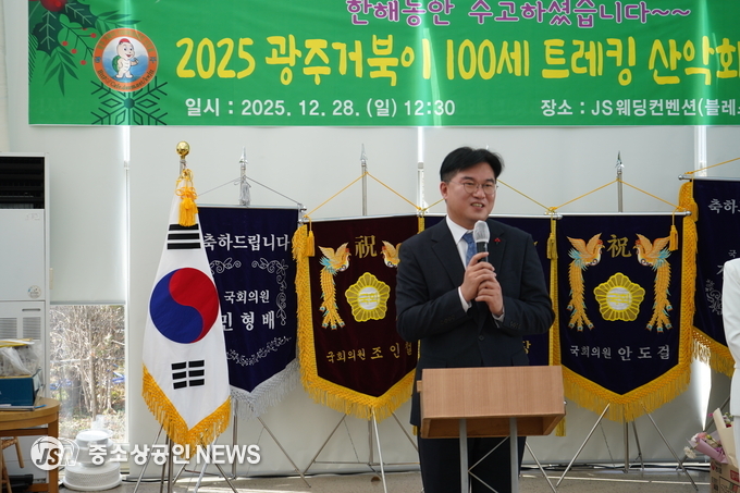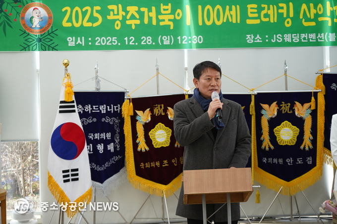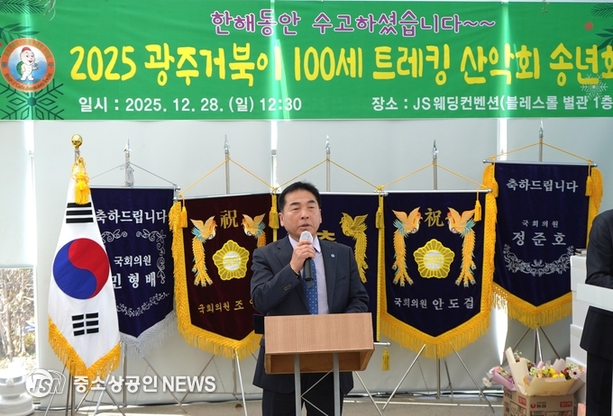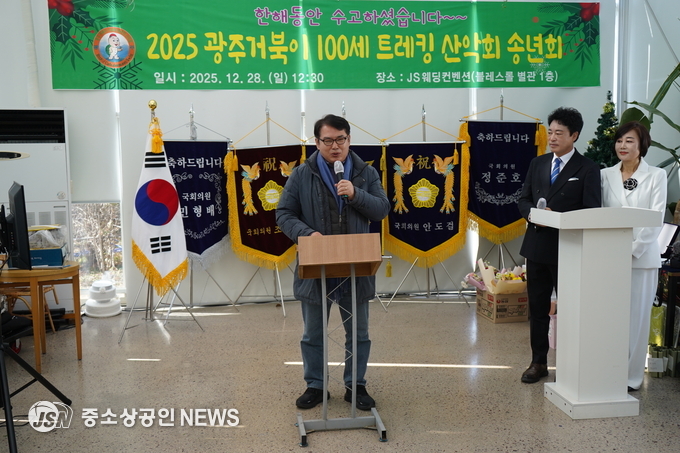 [28일 거북이 100세 트레킹 산악회 최영록 회장이 송년사을 하고 있다] (사진=중소상공인뉴스)