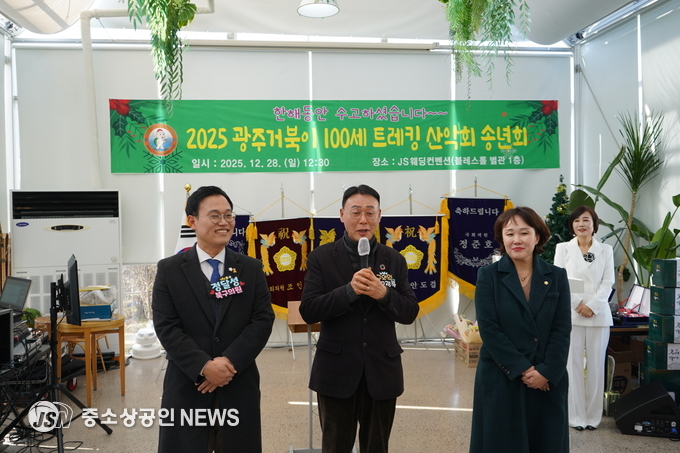 자연을 사랑하고 회원 간의 우애를 다지는 거북이 100세 트레킹 산악회(회장 최영록)는 12월 28일(일) JS웨딩컨벤션에서 2025년도 송년회 행사를 성황리에 개최했다.