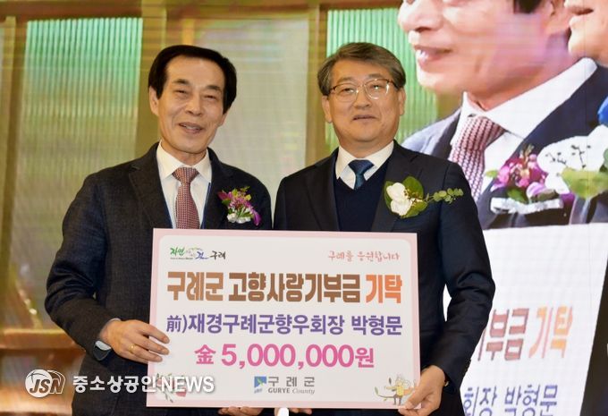 구례군은 ㈜녹십초 회장이자 제16대 재경구례군향우회장을 역임한 박형문 회장이 고향사랑기부금 500만원을 구례군에 기탁했다고 밝혔다.