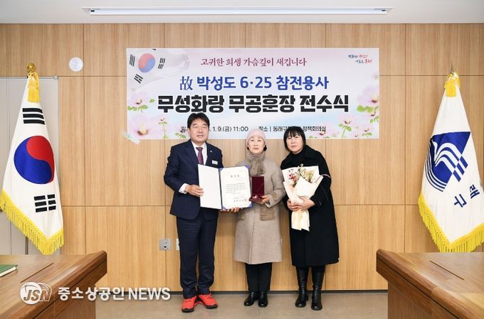 부산 동래구는 지난 9일 6․25전쟁에 참전해 무공을 세운 고(故) 박성도님의 자녀인 박순자 씨(수민동 거주)에게 무성화랑 무공훈장과 훈장증을 전수했다고 밝혔다.