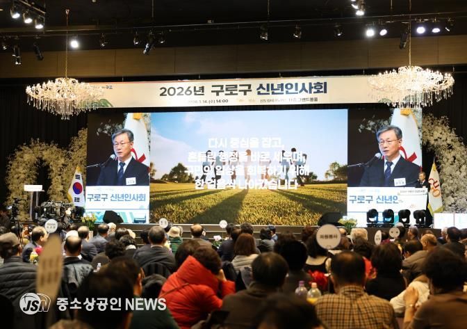 구로구가 14일 오후 2시 신도림 테크노마트 그랜드볼룸에서 ‘2026년 구로구 신년인사회’를 성황리에 마쳤다.