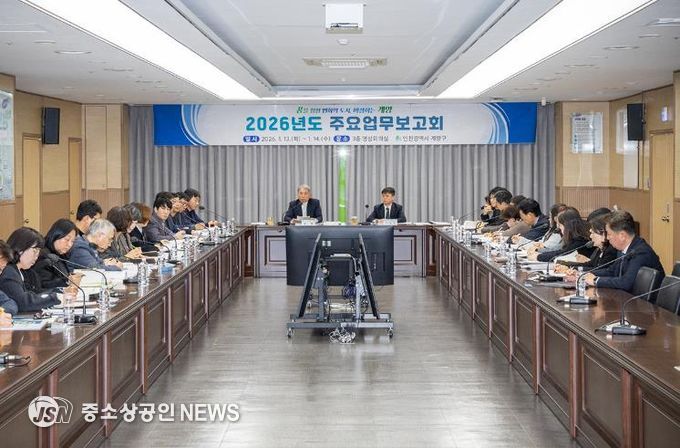 인천광역시 계양구는 1월 13일부터 14일까지 이틀간 구청 영상회의실에서 전 부서가 참여하는 ‘2026년도 주요업무보고회’를 개최했다.