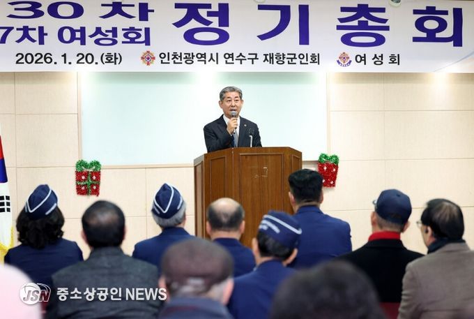 인천광역시의회 정해권 의장(국·연수구1)은 20일 인천시 연수구 보훈회관에서 열린 ‘2026년 제30차 연수구 재향군인회 및 제27차 연수구 재향군인회 여성회 정기총회’에 참석해 회원들을 격려했다.