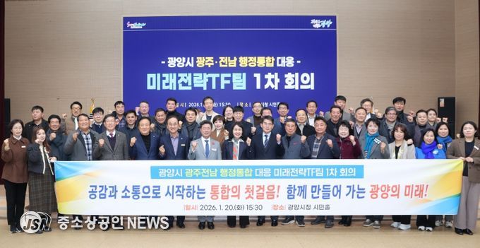 광양시는 1월 20일 시청 시민홀에서 '광양시 광주·전남 행정통합 대응 미래전략 TF팀' 1차 회의를 열고, TF팀원 및 관계자 100여 명이 참석한 가운데 행정통합 대응 방향에 대한 논의를 시작했다고 밝혔다.