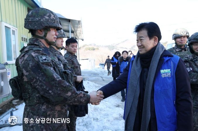 이어 정 장관은 고성B코스를 따라 차량으로 금강산 전망대를 방문, 동부전선 최북단을 지키는 22사단 장병들의 헌신에 감사를 표하고 위문 성금을 전달했다.