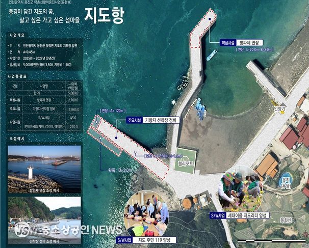 인천시는 낙후된 어촌의 생활환경을 도시 수준으로 개선하기 위해 강화군 장곳항·주문항·선두항과 옹진군 지도항, 중구 예단포항 등 5개소를 대상으로 ‘어촌 신활력 증진 사업’을 추진한다.