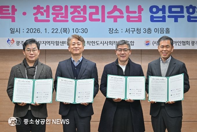 광주광역시 서구의 대표 복지 브랜드 ‘천원의 동행’이 장애인을 위한 일상 돌봄 서비스로 한층 확대된다. 서구는 22일 서구청 나눔홀에서 ‘천원세탁·천원정리수납’ 서비스 제공을 위한 민관 업무협약을 체결했다.