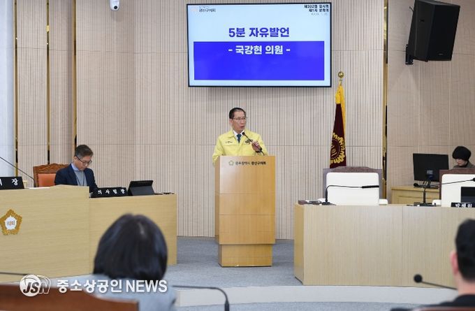 국강현 광산구의원(진보당, 송정1·2동·도산동·어룡동·동곡동·평동·삼도동·본량동)이 28일 열린 제302회 광산구의회 임시회 제1차 본회의에서 5분 자유발언을 통해, 어룡동 주차복합청사 건립 사업 재원 마련을 위한 선운지구 공공용지 매각 계획의 즉각적인 철회를 촉구했다.