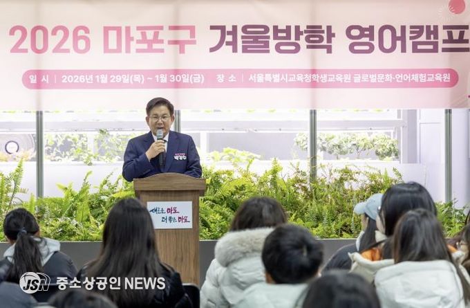박강수 마포구청장은 1월 29일 오전 8시 30분, 마포구청 1층 어울림마당에서 열린 ‘2026 마포구 겨울방학 영어캠프 출정식’에 참석해 캠프에 참여하는 학생들을 격려하고 안전한 캠프 활동을 당부했다.
