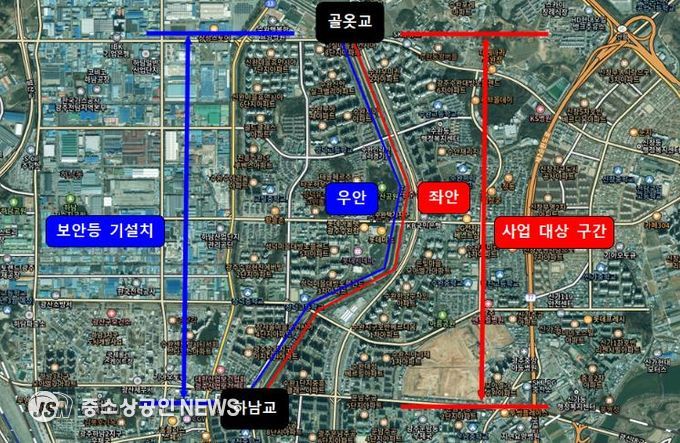 풍영정천 산책로는 풍영정천 좌안 하남교부터 골옷교까지 약 3㎞ 구간으로, 산책로에 조명시설이 없어 야간 보행 환경 개선 필요성이 제기됐다.