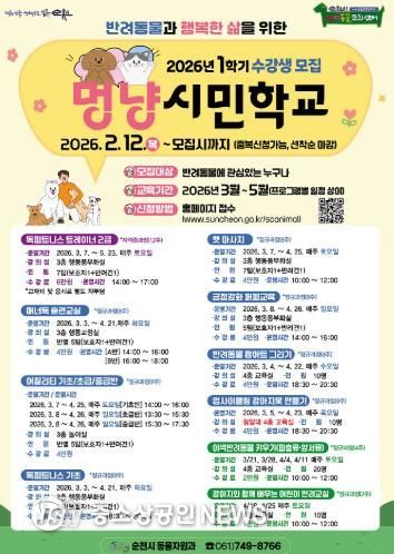 순천시는 오는 3월부터 반려동물과 반려인을 대상으로 한 시민 교육프로그램인 ‘멍냥시민학교’를 운영한다고 밝혔다.