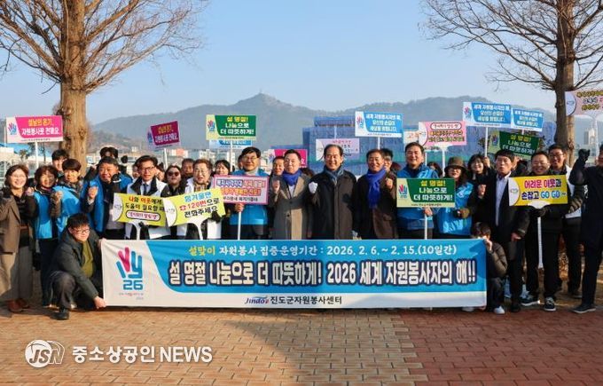 진도군은 설 명절을 맞아 지역사회에 따뜻한 나눔 문화를 확산하고 자원봉사의 가치를 되새기기 위해 자원봉사단체 회원 등 약 60명과 함께 ‘설 명절 나눔으로 더 따뜻하게! 2026 세계 자원봉사자의 해’ 운동(캠페인)을 진행했다.