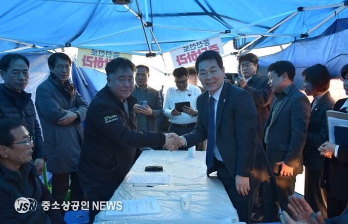 권익현 군수는 설 연휴를 앞두고 대책위 격려 차 덕담을 주고받기 위해 천막을 방문했으며 면담 초반 일부 참석자와 양육점과 관련된 대화로 다소 격앙된 분위기가 연출되기도 했으나 면담이 끝나고 천막을 나오면서 당사자와 오해를 풀고 악수를 하는 등 소통 행보를 이어갔다.